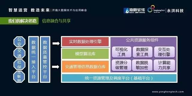 1)信息融合也就是融合内外部的信息:包括我们交警内部数据、公安的数据、保险的数据以及包括互联网现在滴滴、百度、高德所发布的一些公开数据;
