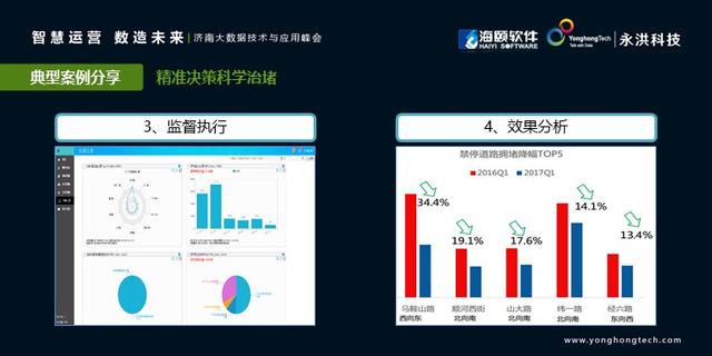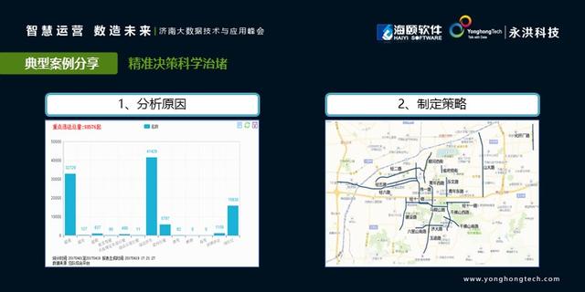 对于拥堵现状,有很多方面的原因。我们提出“侧重某个重点原因,去集中治理。后来发现拥堵现象主要集中在市区。随后我们就分析,产生这个拥堵的原因是什么呢?随后发现是由于事故和交通违法所造成的,也就是交通秩序不规范。然后我们从重点违法出手,分析这些重点区域,重点交通违法就是违停;违停侵占了非机动车道;非机动车把道路占领了,这样道路通畅度就降低了。