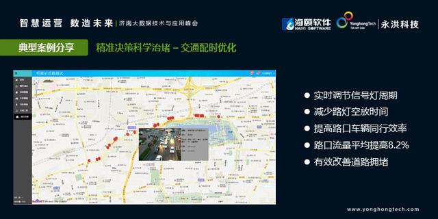 全国有很多地方在做交通配时,我们现在也在做一些尝试。通向火车站的明湖西路和明湖北路,我们做了一些优化,然后通过视频检测,检测路口实时流量以及交通状态,加上外围数据包括卡口数据、互联网数据,做了从点到线再到面的协调。