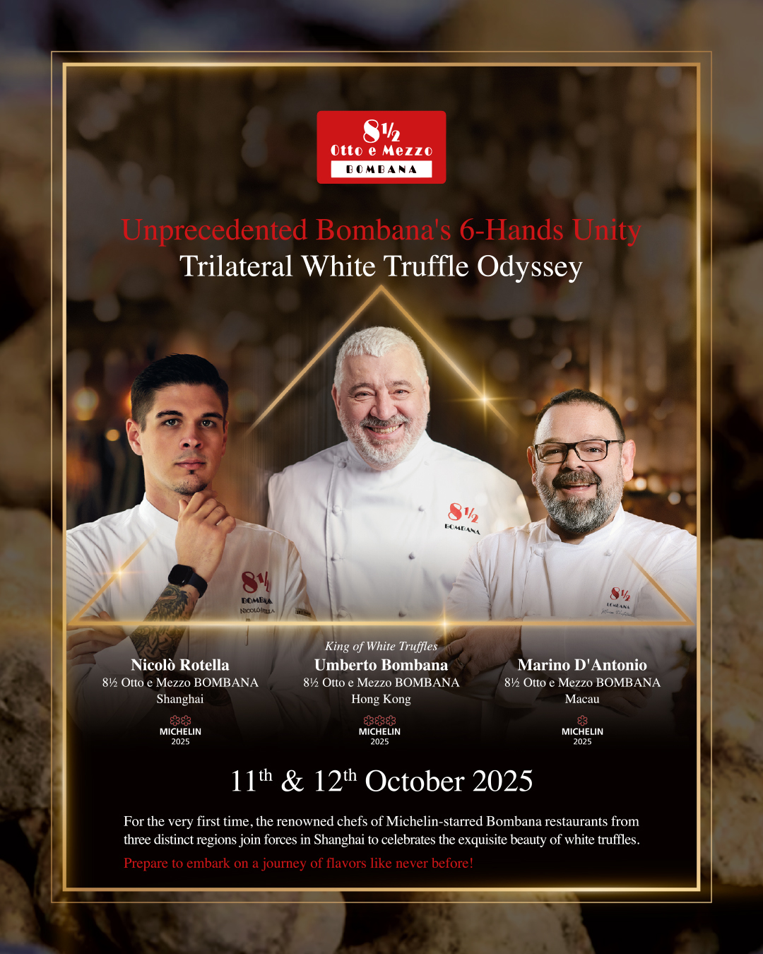 近日,8½ Otto e Mezzo BOMBANA Shanghai 宣布由行政总厨 Nicoló Rotella 主导推出全新秋季菜单,并于10月11日至12日举办三地主厨联袂活动,由来自上海、中国香港及中国澳门的BOMBANA餐厅主厨合作设计多道白松露特色菜品。