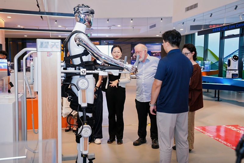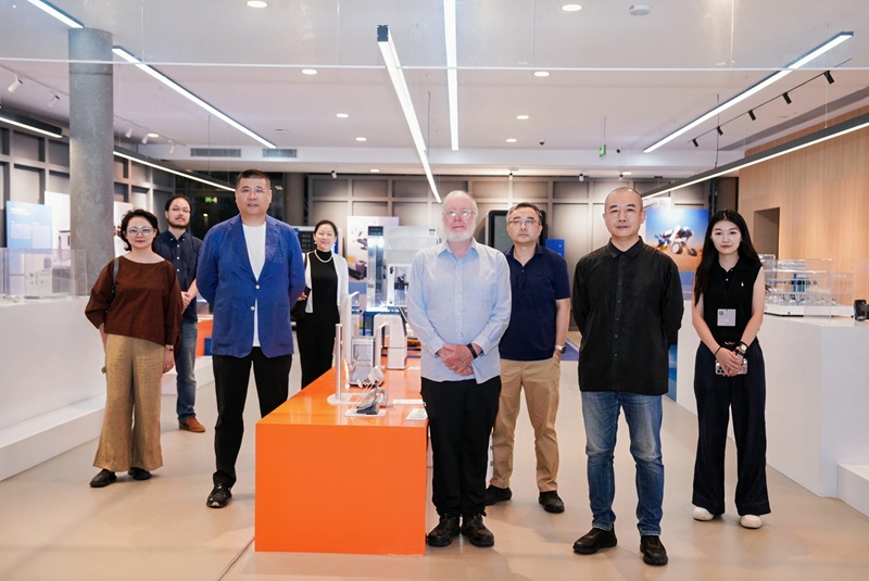 此次参访是凯文·凯利中国行的重要一站。他现场观摩了中国设计智造大奖(DIA)2025优秀作品及新一代智造成果,深入了解中国在人工智能、未来制造、可持续创新等领域的前沿探索,并对展览所展现的技术与美学融合的设计作品给予高度评价。