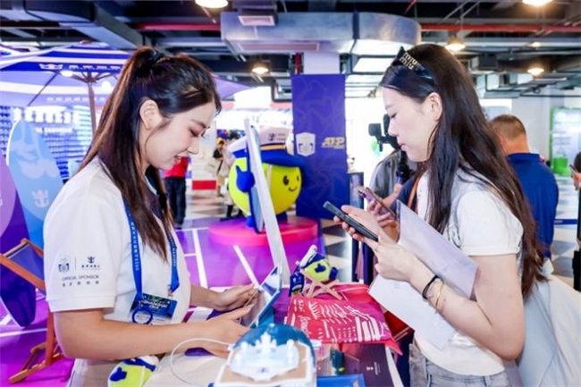 除了观赛体验之外,皇家加勒比还在冠名的“皇家加勒比大师训练场”,为观众提供专属互动环节以及船票福利。作为今年焕新升级的训练场,粉丝们不仅在皇家加勒比大师训练场近距离观看了诺瓦克·德约科维奇、扬尼克·辛纳、亚历山大·兹维列夫等网坛巨星的赛前热身训练;更有幸运观众在皇家加勒比特别设置的“PLAY WITH PRO和大师挥拍”环节中,与喜爱的球星面对面切磋球技,在精彩回合中珍藏与世界顶级高手对打的难忘时刻。训练场内,皇家加勒比还带来了“ACE YOUR VACATION命中精彩假期”挑战、“PLAY BIG大球拍”等趣味互动,精心搭建的“海洋光谱号”大型船模也吸引众多观众打卡留念。此外,皇家加勒比每日还为现场观众送出一张“海洋光谱号”2026年航季家庭阳台房船票,将球迷对网球的热爱延伸至海上假期。