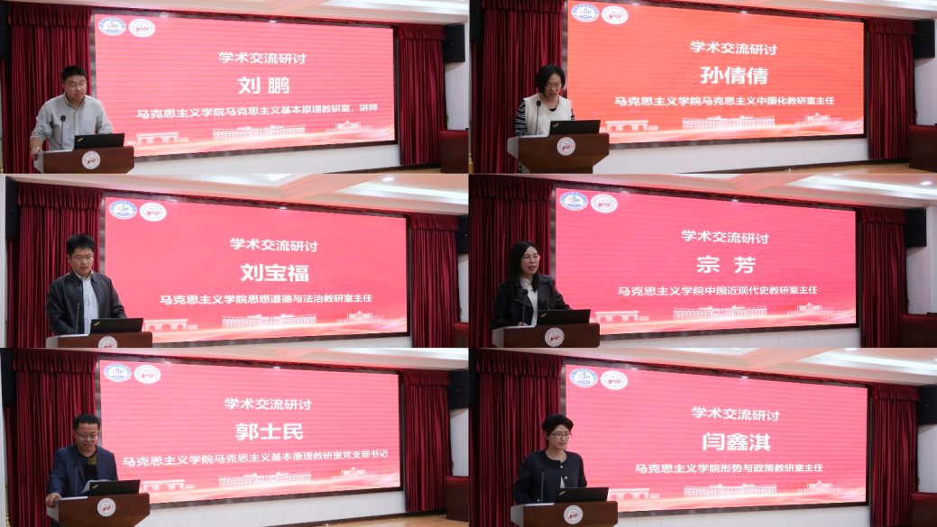 刘鹏、孙倩倩、刘宝福、宗芳、郭士民、闫鑫琪六位教师紧紧围绕着将《习近平谈治国理政》第五卷中的新观点、新论断、新思想有机融入“马克思主义基本原理”“毛泽东思想和中国特色社会主义理论体系”“习近平新时代中国特色社会主义思想概论”“思想道德与法治”“中国近现代史纲要”以及研究生思政课进行了学术交流。