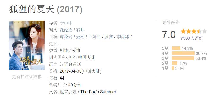 回顾已行至过半的2017,由《三生三世十里桃花》《人民的名义》《外科风云》《择天记》等大制作掀起的流量大战还未结束,而在网剧市场,《热血长安》也依然再占鳌头,这些或玄幻或反腐或悬疑或天价制作的作品无疑在题材及规模上更占优势,但是,《狐狸的夏天》依然凭借着其干净、欢快的剧风为青春爱情作品代言,在各大剧的激战中拿下不错的成绩——目前其独播平台网络播放量已突破16亿。第二季仍在热播中。