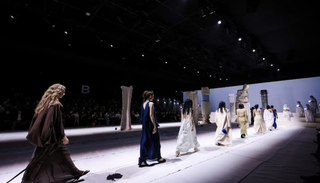 ili node本季以1755年里斯本大地震为灵感,将历史性的断裂转化为诗意的重生。秀场中央的艺术装置营造出庄重氛围,仿佛带观众回到那座满目疮痍又亟待新生的城市。