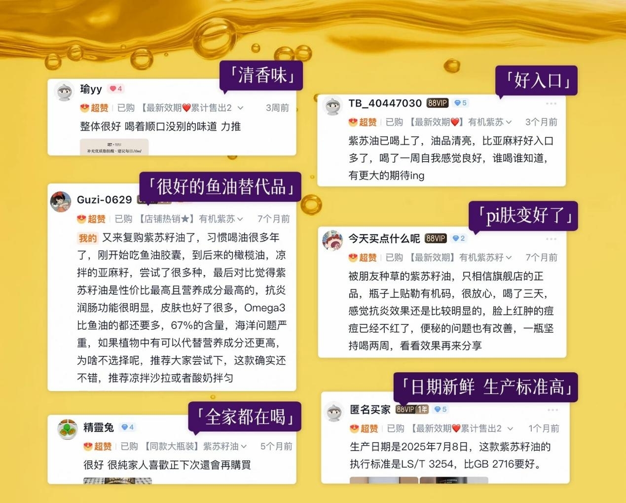 图为:全食物日记紫苏油消费者评论截图