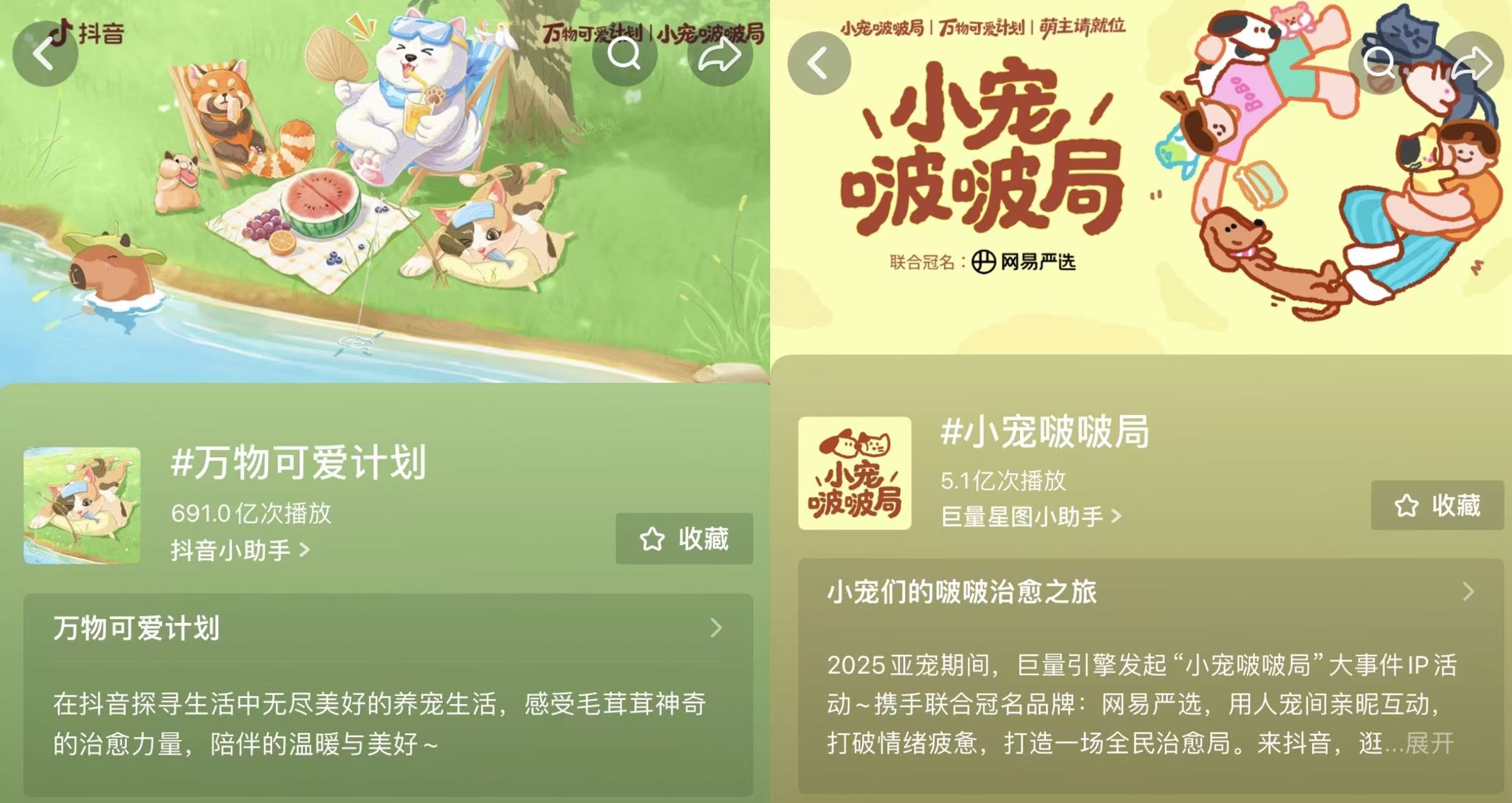 那些微小的触动、散落的瞬间、感动的时刻,在抖音以内容的形式被看见、被分享,并引发共鸣,也把这份来自萌宠的爱与温柔放大到整个夏天。而「万物可爱计划」所做的,正是记录这些不期而遇的温暖,让宠物成为治愈人心的力量,也让品牌在其中找到与用户对话的空间。