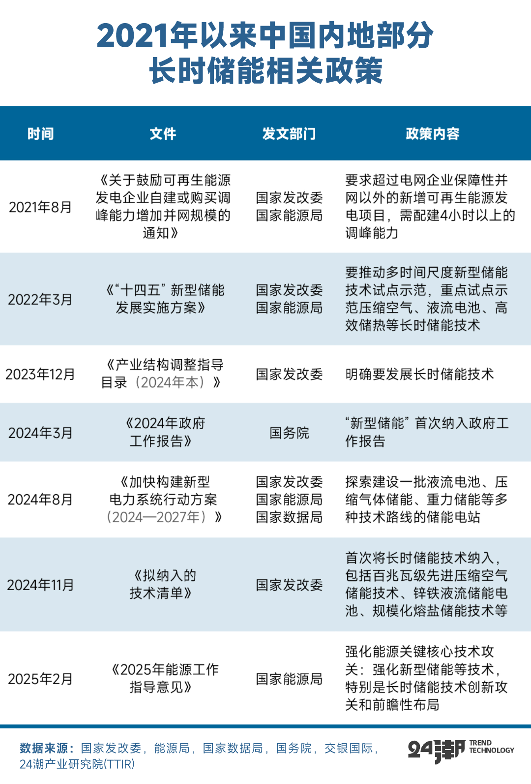 据24潮产业研究院(TTIR)此前了解,在2024年,河南、西藏、内蒙古、新疆、宁夏、上海等地明确提出配置4小时以上长时储能,推动4小时以上储能技术规模化应用。