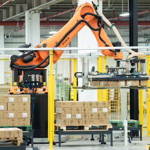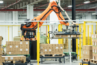 比如,自动区域分拣(ZTZ)流水线通过自动优化排序,提高了热销产品的吞吐量;部署自主移动机械臂(AMR)提升了订单分拣效率;通过数字化模拟优化了快递箱尺寸,降低了冗余空间,减少了纸板浪费、运输量和碳排放。