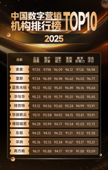 近日,中国数字营销协会依托2024年度数字营销机构的综合实力评估体系,正式发布了备受业界瞩目的“2025中国数字营销机构排行榜”。该榜单作为国内数字营销领域最具权威性与公信力的行业基准,不仅是中国数字营销行业发展的风向标,更成为展示中国数字营销品牌技术突破、模式创新成果的核心窗口。