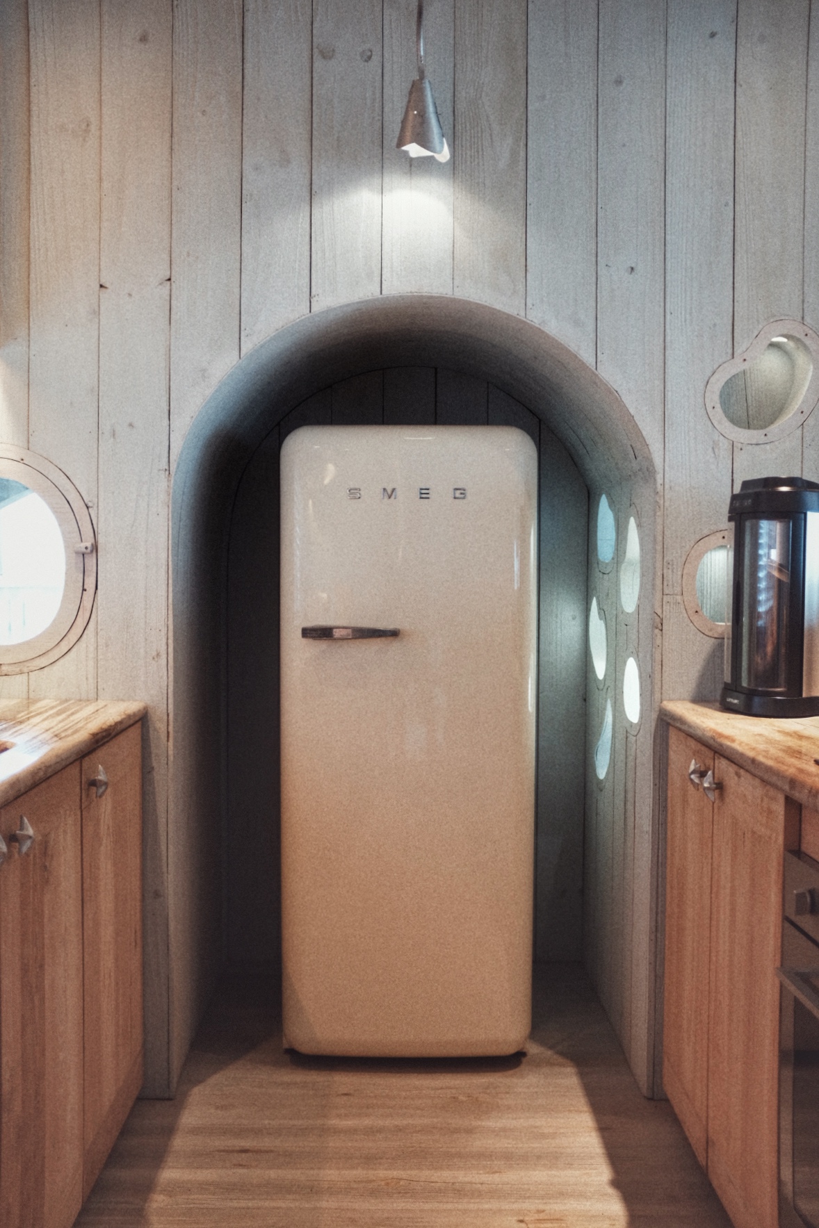 另有一间相连的儿童卧室,适合有青少年同行的三口或四口之家,房间配备了各类海岛探索所需的装备,如有另需也客随时提供。还有设施齐全的健身房,不用出门就能满足健身人的全部需求。还要介绍一下带迷你吧的备餐间:SMEG冰箱的迷你吧里各类鲜榨果汁、汽水、奶酪、水果、啤酒和小食,SMEG烧水壶、胶囊咖啡机(新加坡新锐品牌Morning)、酒柜等也应有尽有。在房间用餐的话,主厨就是在这里完成所有的菜品,现场制作。