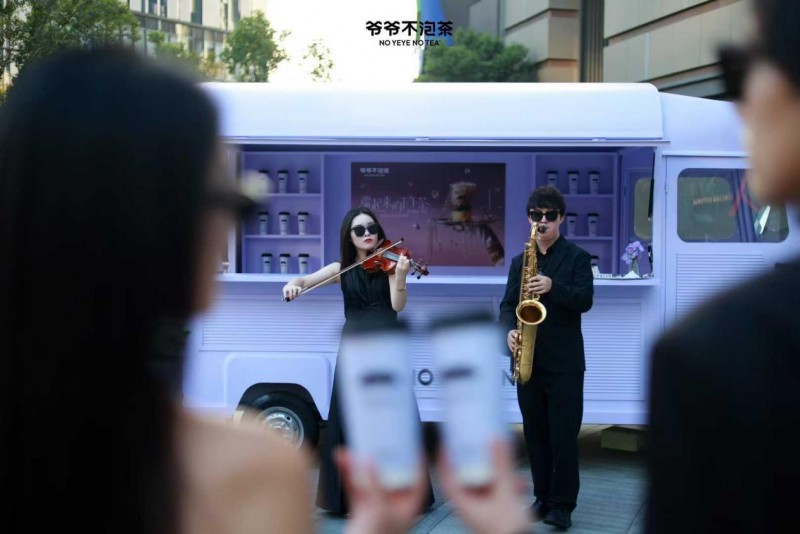 同时,爷爷不泡茶还在上海真如环宇城开展快闪活动。在萨克斯和小提琴的现场演奏下,通过紫色沙发搭配珍珠装饰、挂着珍珠链的巨型奶茶杯等装置,爷爷不泡茶打造限定“名媛下午茶”频道。不管是精致摆盘还是环境腔调,都让消费者仿佛置身老上海的时髦“大世界”,随手拍都是氛围感大片,让消费者在享受佳酿的同时,享受到上海海派文化的氛围。