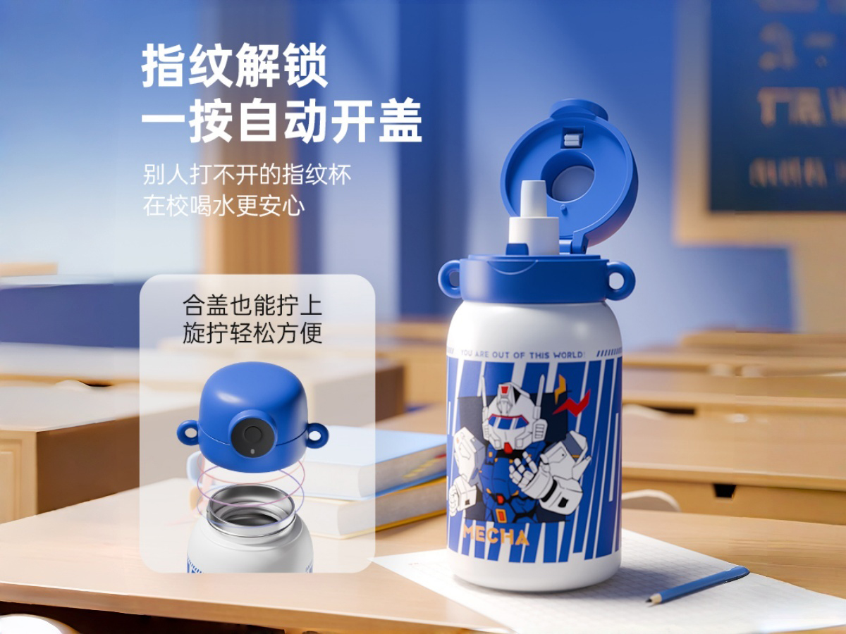 关怀在何处?看安全,富光智能指纹儿童水杯杯盖内置高精度指纹识别芯片,只有录入指纹才能打开,拧盖也需指纹解锁,真正做到“别人打不开”,隔绝误开、恶作剧带来的风险,构筑起孩子饮水的第一道安全防线;内胆采用更抗酸碱耐腐蚀、易清洁的316L不锈钢,配合IPX7级全身防水,无惧清洗,将“守护健康”落实到每一口水的纯净与每一次使用的安心。