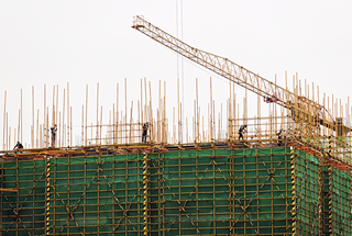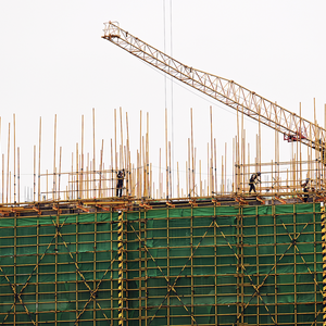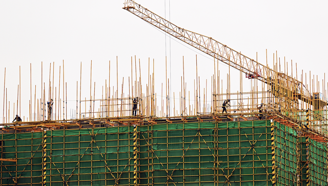 2025年8月31日,重庆巴南区龙洲湾基建工地现场,作业人员正在搭设架子。建设者不畏酷暑,加紧施工,力争早日完成房屋建设任务。图片来源:CFP