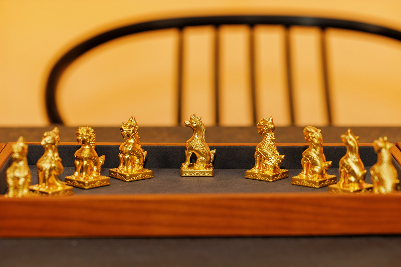 直播中特别设置的“黄金痛屋”也成为关注热点。周大福陈列了总价值超过3000万元的黄金艺术品,包括可使用的黄金手包、造型独特内有乾坤的黄金茶壶,以及以太和殿脊兽为原型的系列作品。“这哪里是痛屋,这是国库吧”“太匠心了,不愧是周大福”等弹幕瞬间刷屏。