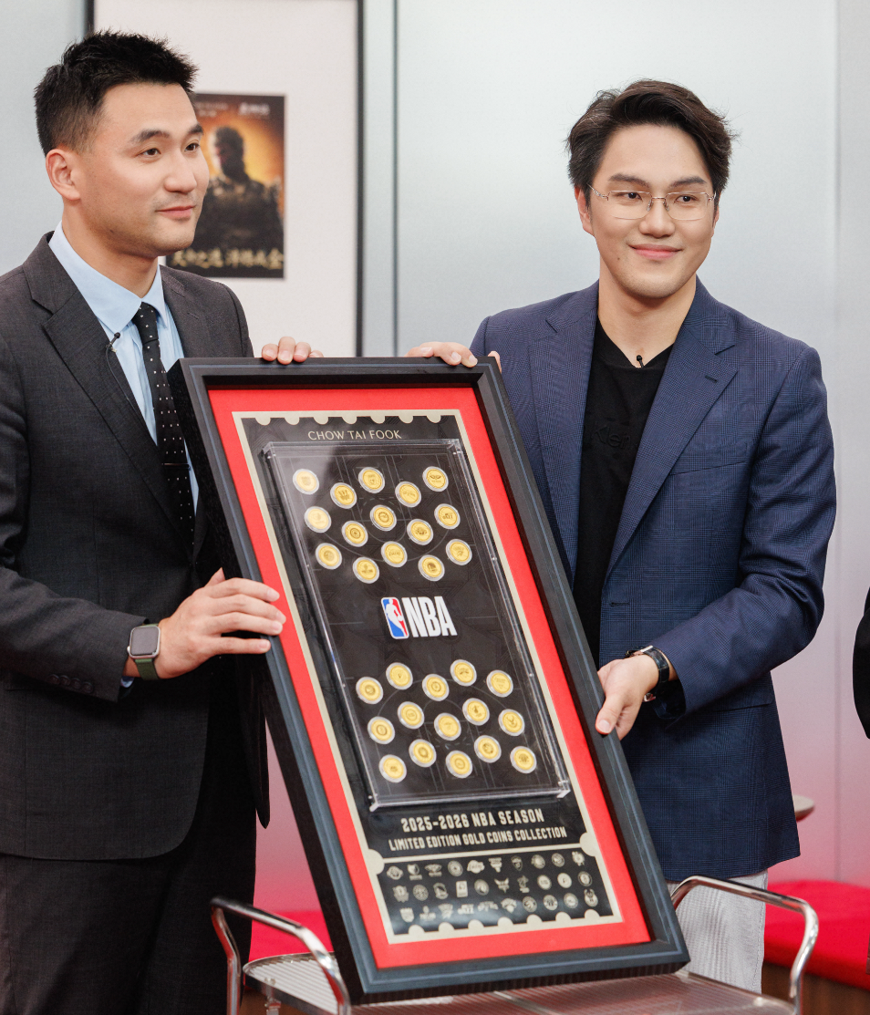 (图说:左为NBA体育文化发展(北京)有限责任公司副总裁 童开申先生右为周大福珠宝集团首席数码官 张宏光先生)