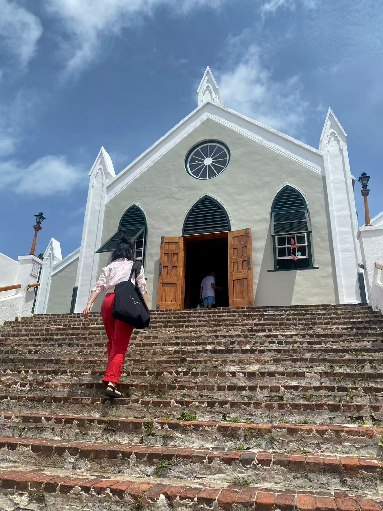 今天一早就去了圣乔治镇。那里有许多彩色小屋,以白色居多。小巷保留着当年的弹格路,有许多奇花异树,拐个弯,就可见海景、沙滩。历史这样记载:1609年,乔治·萨默斯率领的“海洋冒险号”在前往弗吉尼亚的途中遭遇风暴,船只在这里附近搁浅。船上的幸存者们利用打捞上来的物品和当地的雪松建造了两艘新船,并在百慕大停留了一段时间。1610年,大部份殖民者继续前往弗吉尼亚,但有少数人留了下来,成为了百慕大的第一批定居者。这个小镇是百慕大第一个定居点。现在,它成了世界历史文化遗产。