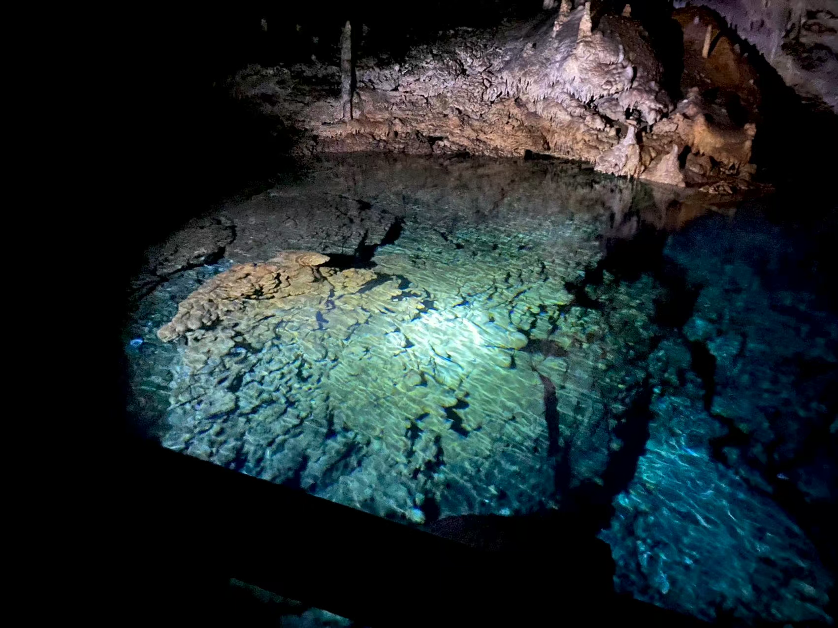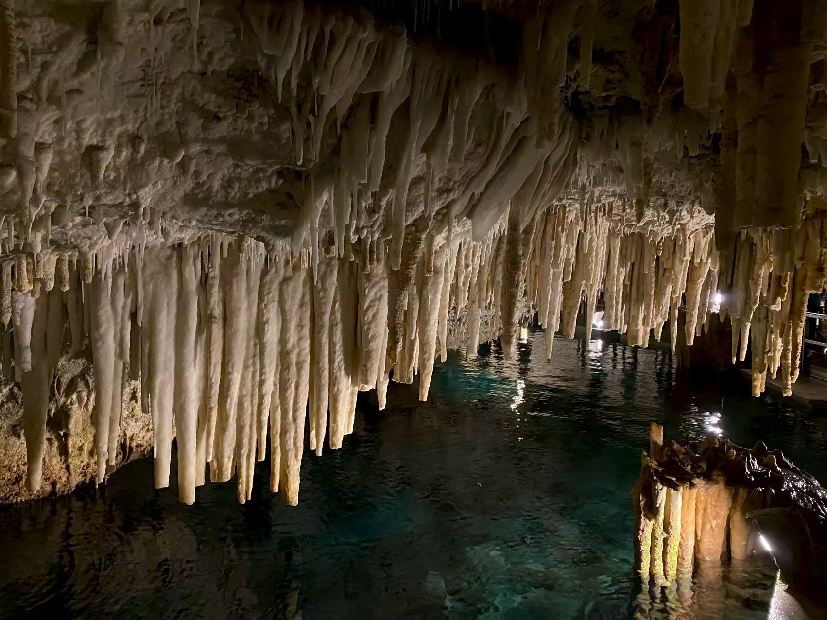 去了蓝洞。一个钟乳石构成的地下岩洞,也属百慕大打卡地。从买票、分组、等候、领队带入、导游讲解,都井然有序。黑人园丁、保安也彬彬有礼。外面是英式草地,有修剪如塔的树。等候者可赏花观草。进入洞内,灯光设计特别柔和,没有五光十色。导游也不说那块石头像什么,只告诉你那些垂吊的钟乳石,一万年只长几厘米。你凝视它,会想到人生之短促不是比喻。发现蓝洞的是两个孩子。100年多前,他们在附近打板球,球打偏了,他们去找球,发现了这个洞。导游会突然把灯全关了,让你体会那两个孩子在微弱的光线中发现这个洞的惊叹。我想,当年那些遇海难爬上岛的英国人,是不是也发出过类似的惊叹。