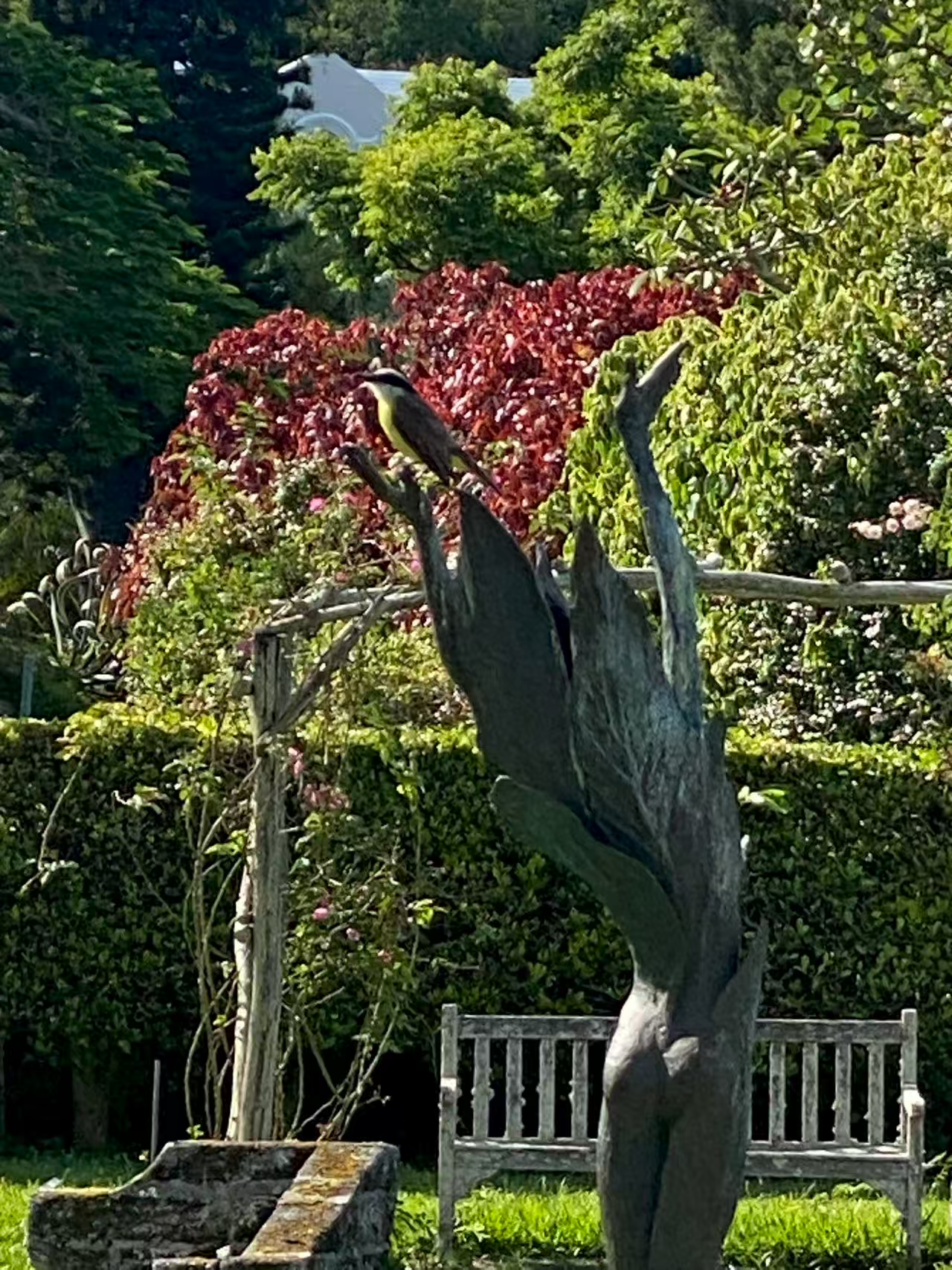 上午去百慕大玫瑰园寻找中国玫瑰。据说这里有上百种玫瑰来自中国古老月季。我找到一株牌子上写着“Fabvier”的花,1832年来自中国。可能是最早的吧。陈丹燕说应该是当年东印度公司从广州海运过来的。带我们来找玫瑰园的出租车司机,祖上是苏格兰人,母系中有一位是当年那条英国船上被解放的女奴。他说他们家族在这里生活了300多年。现在百慕大总共65000居民,他们家族就有1500人。“不管你到哪个行业,饭店、商场、银行,都能找到我们家亲戚”。他说这个话时有点得意。他有一张热情、坦诚、棕色的脸。