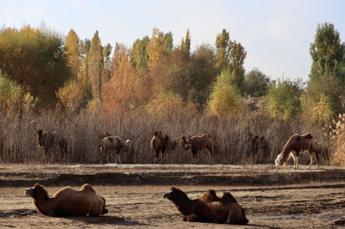 在丰草牧场自有的阿合依哈提牧场,近3500峰骆驼在3万亩草场上自由徜徉,采食骆驼刺、梭梭、沙枣等天然植被。牧场采用“集中采奶、散养生活”模式,并引入德鲁伊科技的BADGE 4G生物数据采集终端,实时监测骆驼健康状况与活动轨迹,实现传统放牧智慧与现代科学管理的完美结合。