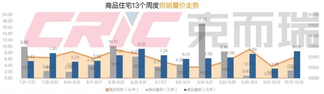 据克而瑞发布的最新数据显示,上周能建未来城、邦泰春华序2个项目向市场新增供应约2.51万㎡;成交8.55万㎡,环比179%;成交均价约11972元/㎡,环比7%。