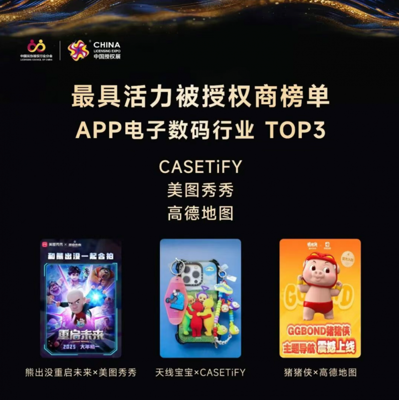 近日,美图秀秀与“熊出没”联手打造的AI影像新玩法,入围2025中国最具活力被授权商榜单,一同入围的还有CASETiFY和高德地图。