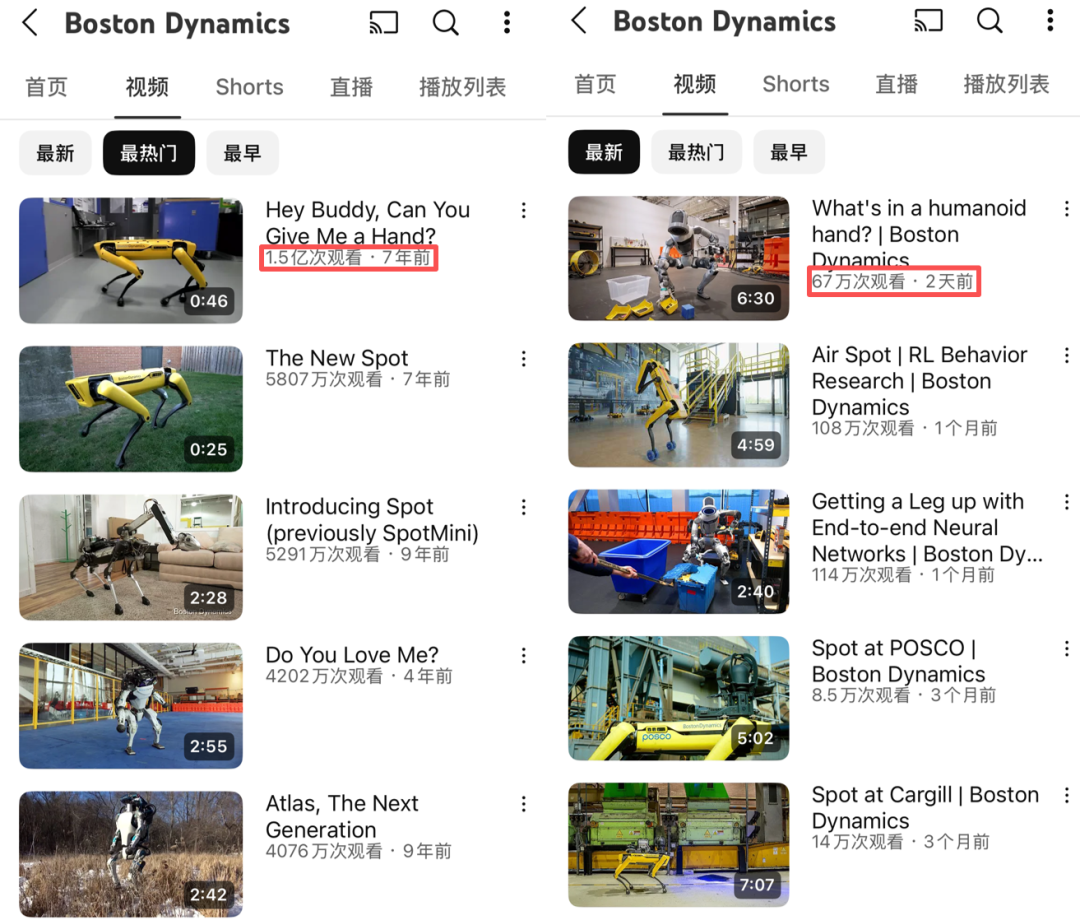 波士顿动力账号的最新一期视频,观看量只有67万次。