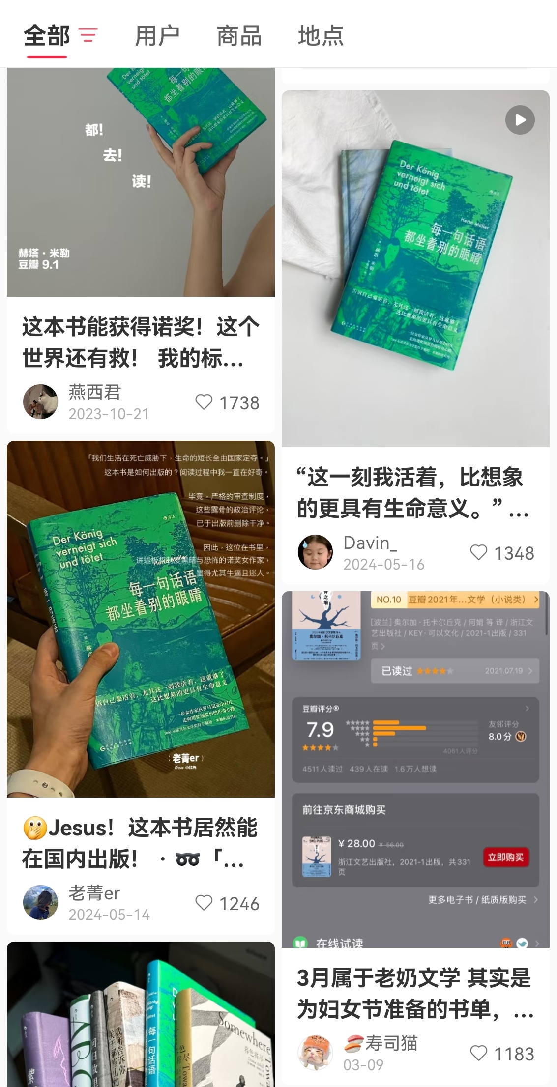 在读书类bot中检索“东欧文学”,除了2018年诺奖获得者托卡尔丘克的《太古与其他的时间》和她的其他小说,评论区里经常提到的赫塔·米勒的《每一句话语都坐着别的眼睛》以及杜布拉夫卡·乌格雷西奇的《疼痛部》,近年来在社交媒体上小有讨论。一些读者说,他们知道这些作品,但并不知道它们也可以属于东欧文学。
