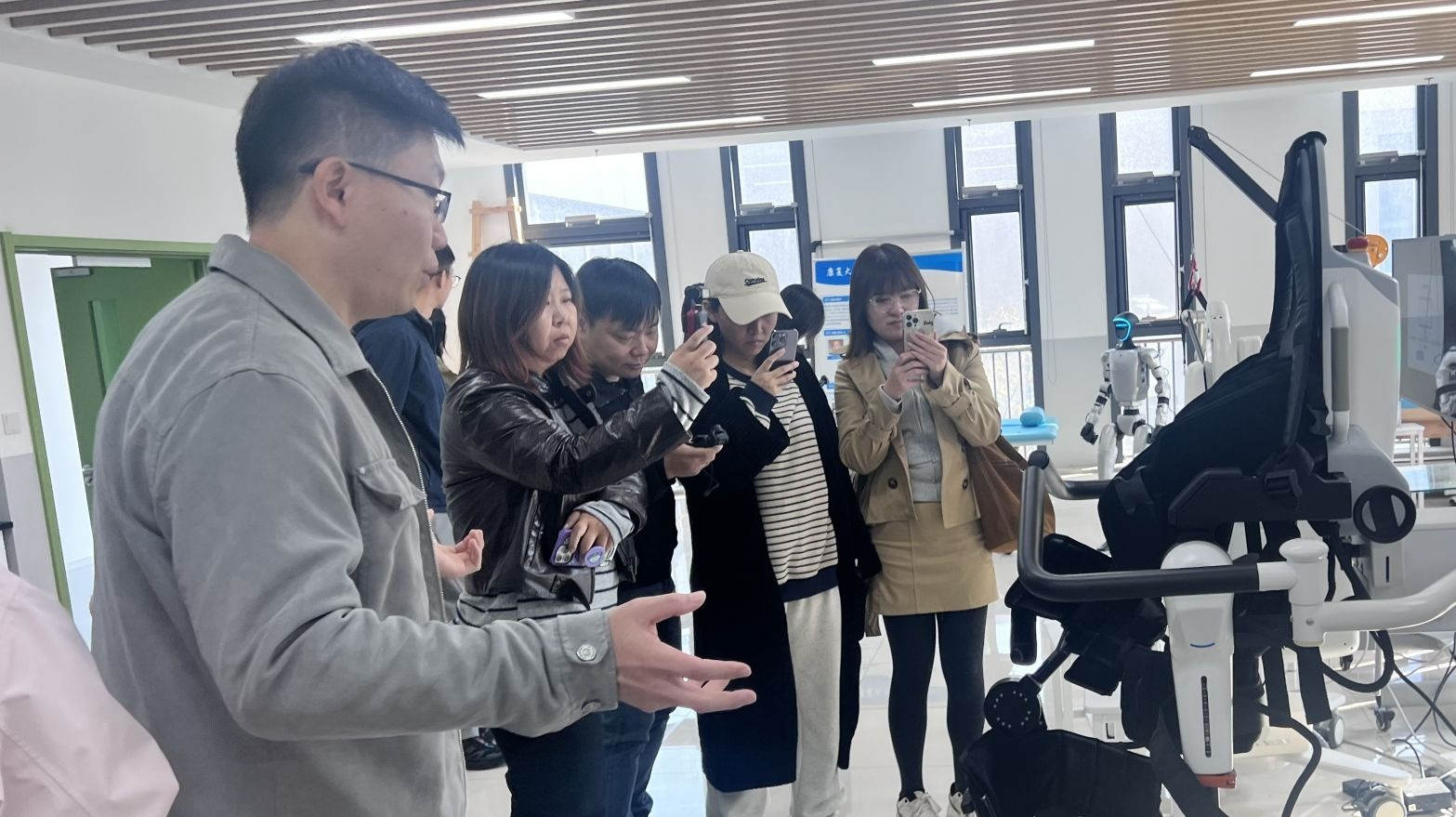 走进学校的生物医学工程大学生创新实验室,康复产业的未来感扑面而来。这里作为学校最主要的医工融合实验区域,堪称康复技术的“孵化器”。在人形机器人实验区域,研究人员正开展面向康养应用的人形机器人运动控制与模仿学习实验,目标是让它们未来能成为贴心的康养助手;在康复机器人实验区域,各式各样的外骨骼和机器人设备,为肢体功能障碍患者开辟了新的治疗路径;在脑机接口实验区域,通过读取大脑信号、肌电采集装备来控制轮椅或机械手,正在为重度瘫痪患者打开新的人生可能;在具身机器人片区,汇集了按摩机器人、车臂一体照护机器人等设备,提供了如何用科技精准解决具体的照护难题的方案。“科技感十足,在这里看到了智能技术与未来高端康复产业深度融合的更多可能性”,自媒体大V“乱码的旅行故事”说道。