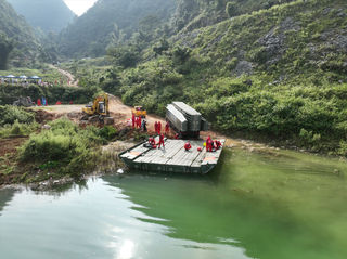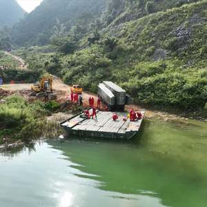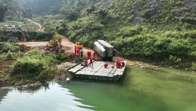 10月20日,安能一局57人携带抽排水车等设备赴广西排涝救灾。针对“一点一策”排涝治涝方案, 安能救援人员则在连接水库和多气洼地之间最狭窄的垭口处修建挡水坝,防止水库的水进一步涌进村子。同时,还通过人工抽排的方式将村里的水逐渐抽排到水库,加速村里洪水消退。
