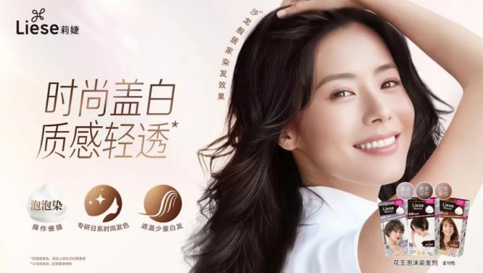 本届展会,莉婕带来亚洲肤色定制发色系列,分“彩染”“盖白”两大系列:前者凭借花王专研Coacervation显色亮泽设计实现亮泽持色,更是定制23款透明感发色供消费者选择;后者推出10款亚洲肤色适配的雾感盖白发色,营造自然原生质感。两大系列均搭载花王泡沫专利技术,新手也能均匀上色,更通过AR变装等智能手段,让生活者便捷选到专属发色。