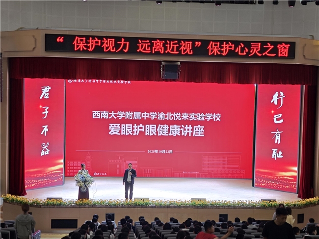 2025年10月22日,重庆市近视防控科普基地星辉眼科走进西南大学附属中学渝北悦来实验学校,开展了一场以“保护视力、远离近视——保护心灵之窗”为主题的近视防控科普讲座。这场覆盖全校师生及家长的公益讲座,通过专业科普、案例解析与互动答疑,为青少年视力健康筑起一道科学有效的视力防线。