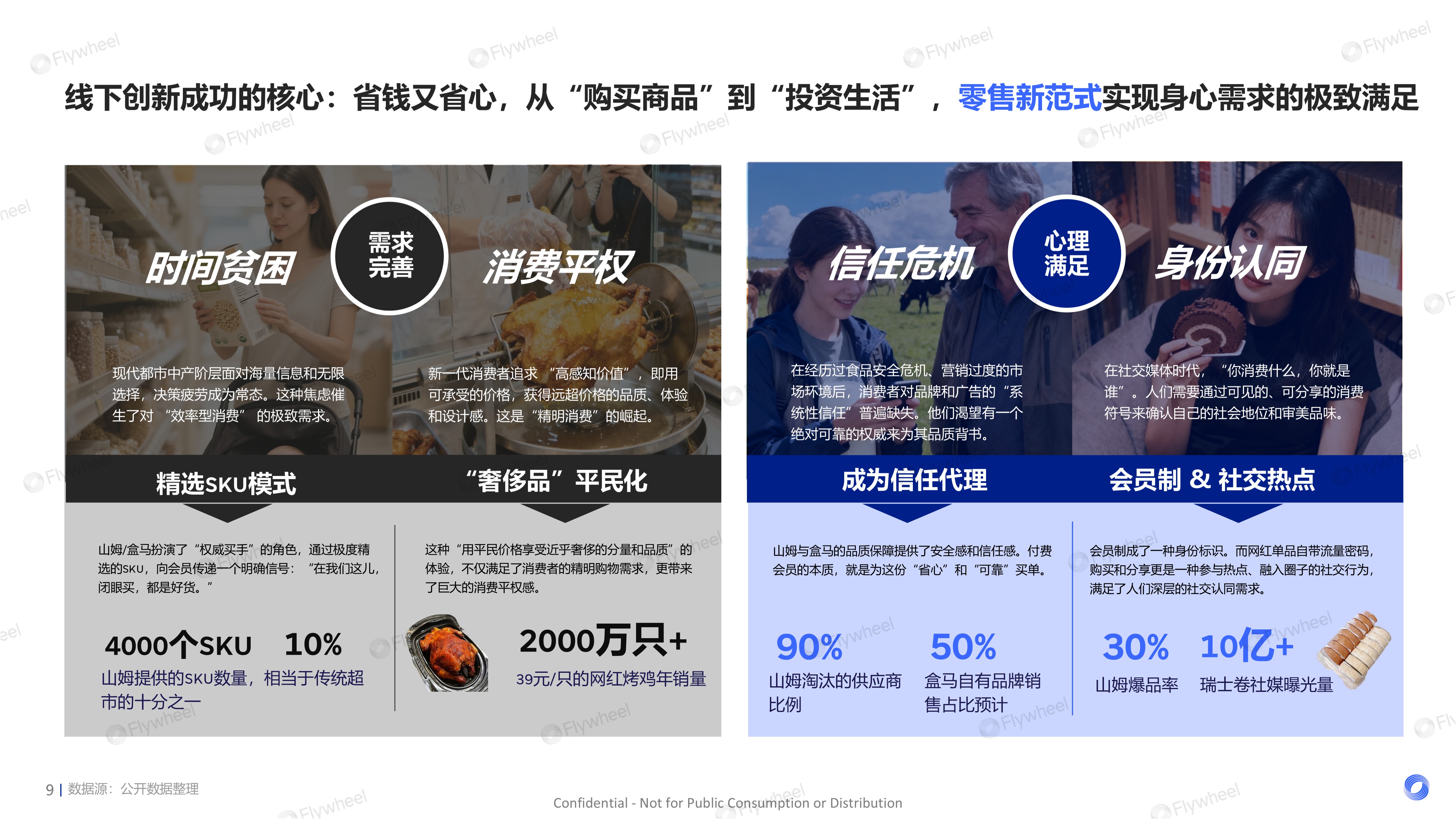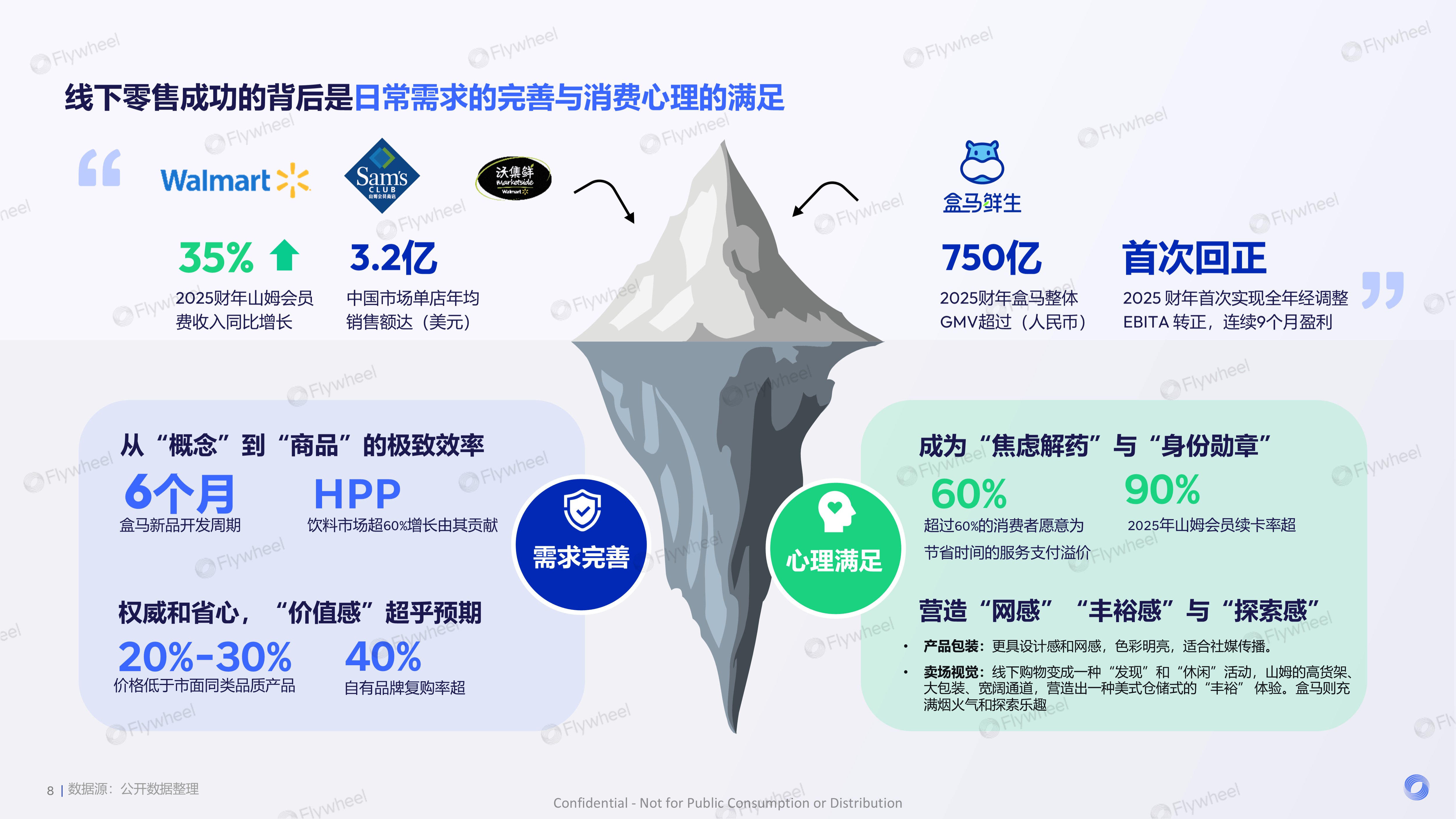 更深层次来看,这些零售商的成功还在于他们精准捕捉并回应了当代消费者的心理需求。在信息过载与信任缺失的背景下,山姆高达90%的供应商淘汰率和盒马近50%的自有品牌占比,为消费者构建了可靠的品质保障体系。超90%的山姆会员续卡率更是说明,消费者购买的不仅是商品,还是一种生活方式认同和社交资本。