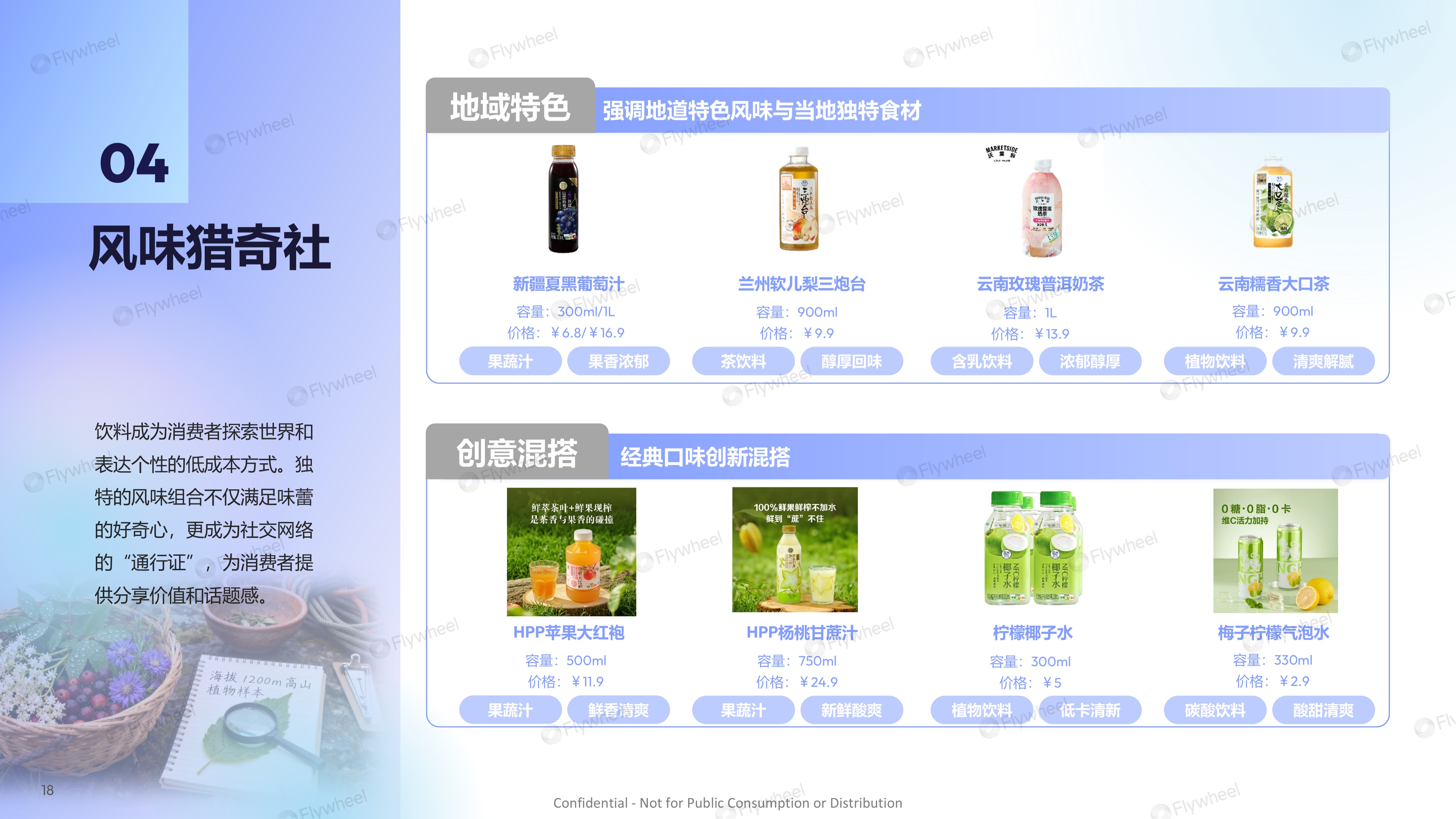 饮料成为消费者探索世界和表达个性的低成本方式。独特的风味组合不仅满足味蕾的好奇心,更成为社交网络的“通行证”,为消费者提供分享价值和话题感。