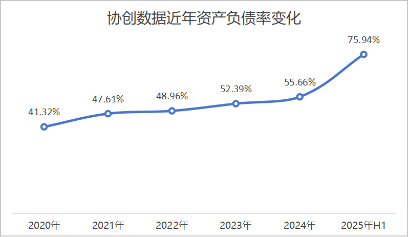 高频次、大规模投入之下,协创数据财务状况急剧承压。公司资产负债率由2024年末的55.66%猛增至2025年上半年末的75.94%。从下半年仍有巨额采购计划来看,这一指标年内或继续攀升。