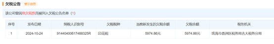经营层面的亏损更让其“拖后腿”效应加剧:2025年上半年,格力房产净亏损3.36亿元,直接拖累珠免集团整体归母净利润录得负数;现金流的紧张还体现在税费缴纳上,天眼查信息显示,截至2024年底,格力房产仍欠缴印花税5974.86万元,短期资金周转压力可见一斑。