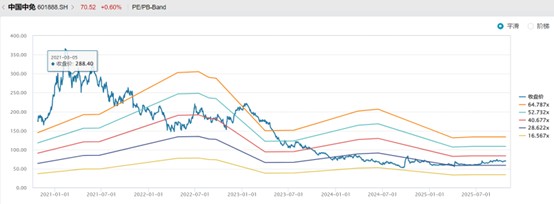 估值方面,从资本市场估值逻辑看,免税业务普遍享有显著溢价:中国中免当前市盈率(PE)约29倍,而A股龙头地产开发商历史平均市盈率估值普遍在6–10倍。原因在于免税赛道毛利率高、现金流稳、政策红利持续释放,成长性与防御性兼具;反观地产开发,高杠杆、低周转、政策调控频繁,盈利波动大,估值中枢长期受压。珠免集团完成地产资产出售后,资产负债表将彻底“轻资产化”,盈利结构由“地产开发”切换为“免税运营”,可直接对标消费零售估值体系。
