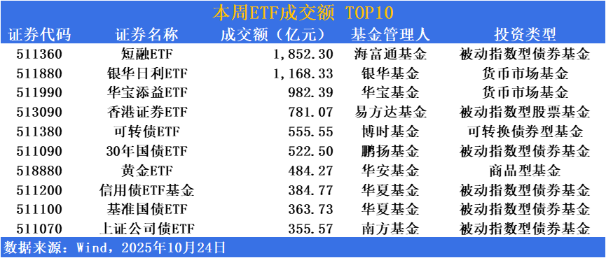短融ETF(511360)、银华日利ETF(511880)周成交额双双破千亿