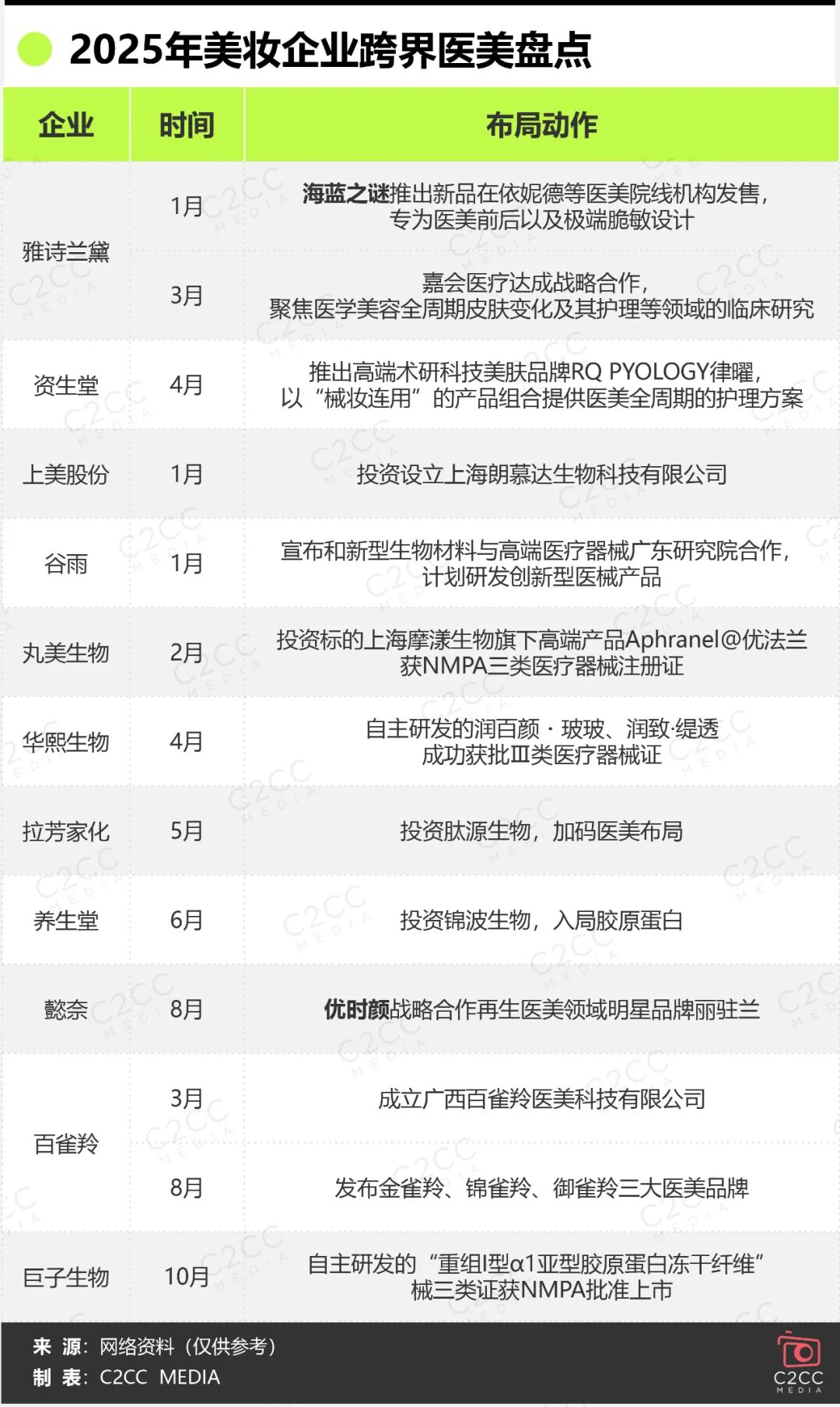 此外,养生堂投资锦波生物入局胶原蛋白赛道、拉芳家化投资肽源生物加码医美布局,也印证了资本赋能已成为品牌快速切入医美领域的主流选择之一。