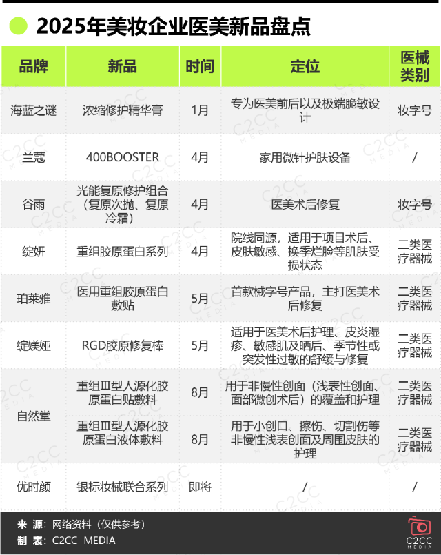 然而,美妆企业布局医美最终要落到产品端,2025年的医美新品发布呈现出明显的节奏特征与市场导向。