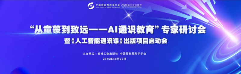2025年10月22日下午,由中国图象图形学学会与机械工业出版社联合主办的“从童蒙到致远——AI通识教育”专家研讨会暨人工智能通识课出版项目启动会在北京隆重举行。本次活动汇聚中国科学院院士、教育专家、中小学校长及行业代表,以线上直播形式,共同探讨人工智能时代的教育变革,并正式启动人工智能通识课系列科普读物出版项目,为中小学AI通识教育按下“加速键”。