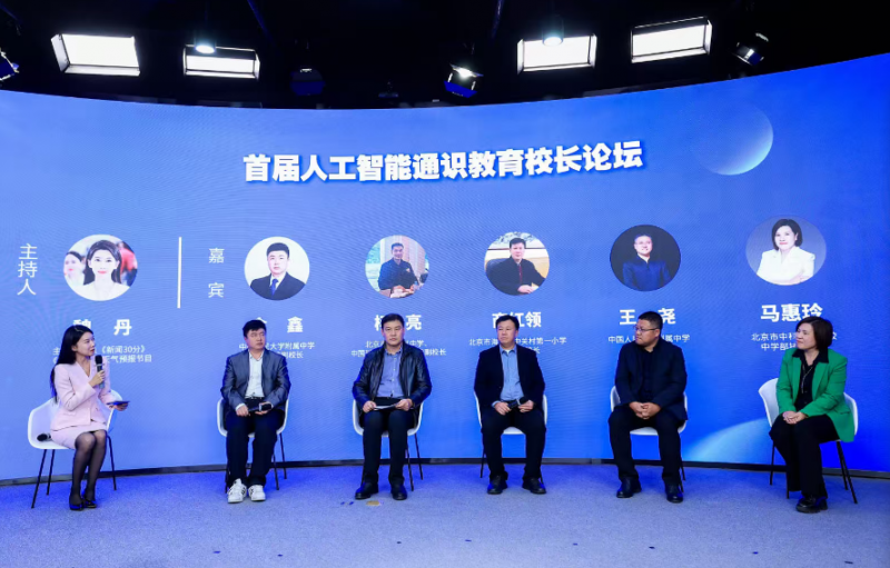 启动仪式的璀璨灯光照亮了前路,而道路如何走得更稳、更远?在首届人工智能通识教育校长论坛上,五位来自教育一线的领军人物——中关村第一小学教育集团校长商红岭,中国人民大学附属中学分校副校长王尧,中国人民大学附属中学丰台学校副校长金鑫,北京市中关村中学、中国科学院中关村学校副校长杨亮,中科启元学校中学部执行校长马惠玲,在主持人魏丹的引导下,展开了深度对话。校长们围绕AI通识教育的核心价值、课程设计、师资培养、教育公平及效果评价等议题,分享了从“价值定位”到“课程设计”的全链条实践智慧,为解决“教师不懂AI”“资源分配不均”等现实难题提供了宝贵方案。