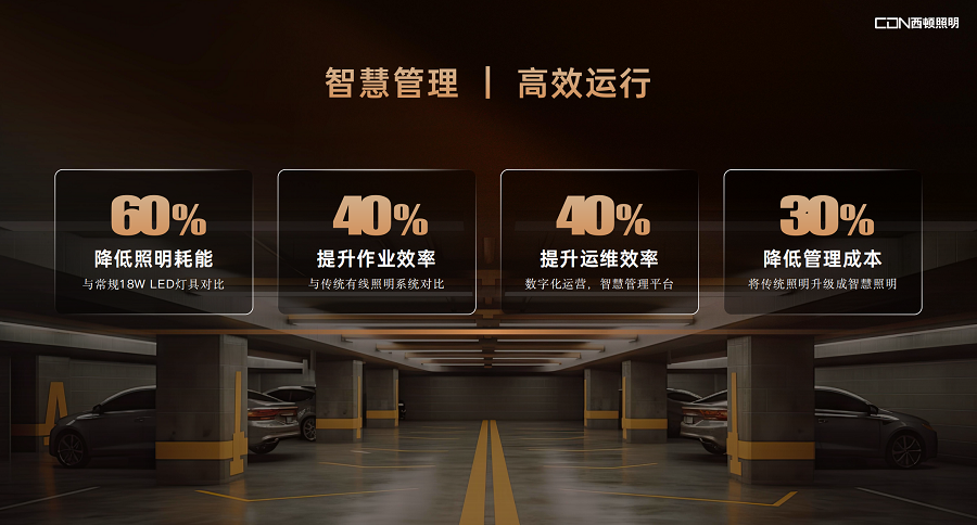 高效节能:以单一项目的地下车库照明为例,灯具节能率高达70%,投资回收期仅6个月,五年累计节约超64万元。