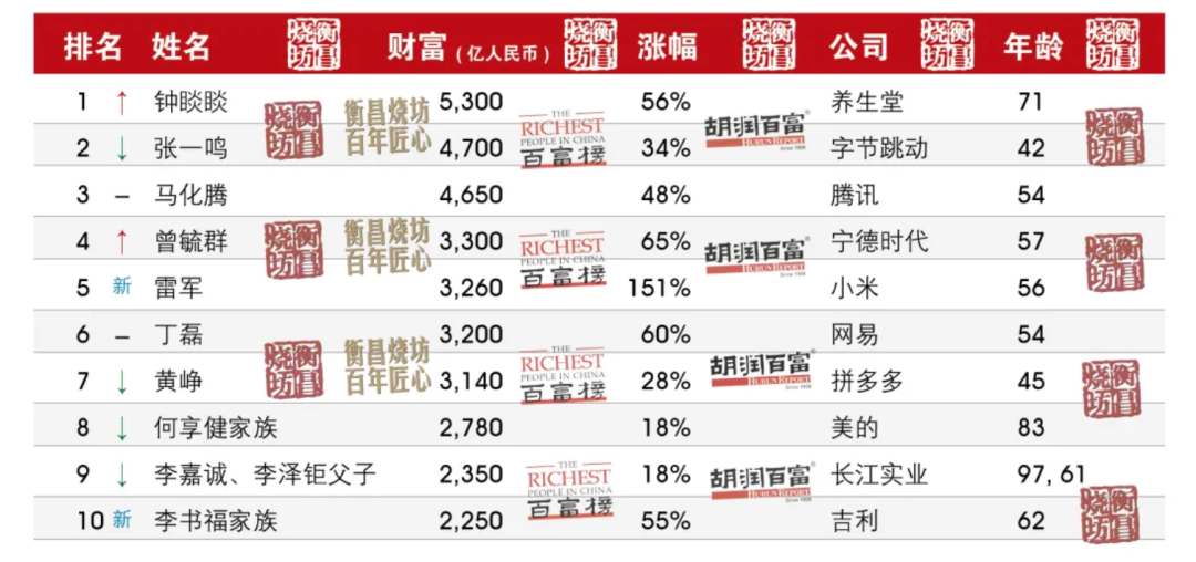 不过在这个榜单上,钟睒睒的“敌人”不只一个。