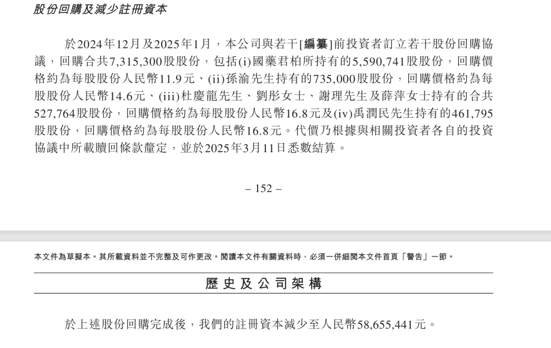 2025年1月,个人投资者刘彤、薛萍等人也选择退出公司股东行列,其持有的股权由公司回购,再加上国药君柏的回购支出,公司共花费9373.8万元。