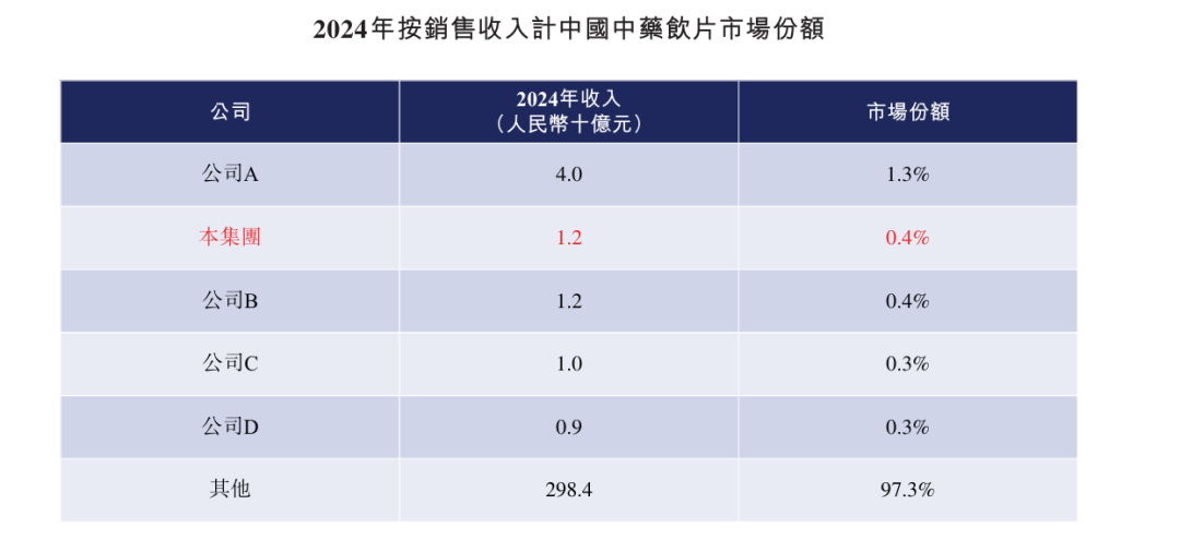 招股书中,新荷花表示,按照2024年销售收入算,前五大中药饮片市场参与者的市场份额合计仅为2.7%,新荷花为第二大中药饮片生产商,市场份额为0.4%。