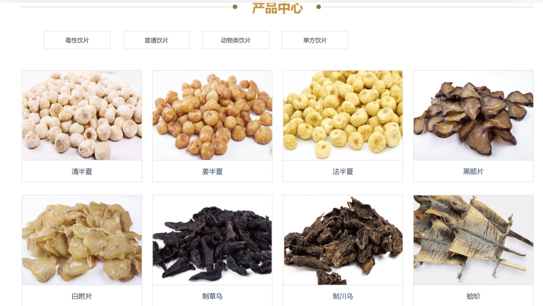 新荷花主要生产其中的10种毒性饮片,包括法半夏、清半夏、姜半夏、白附片及黑顺片等。而在普通饮片中,新荷花可以提供约760种,比如黄连、川牛膝、川贝母、白芷、白术等。