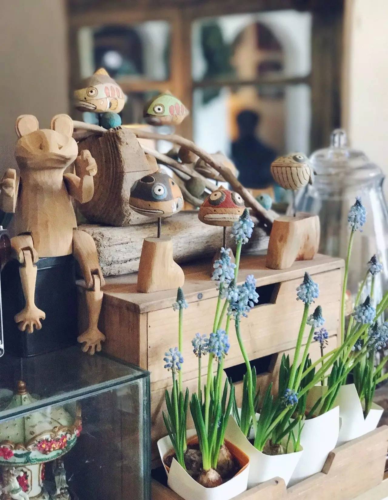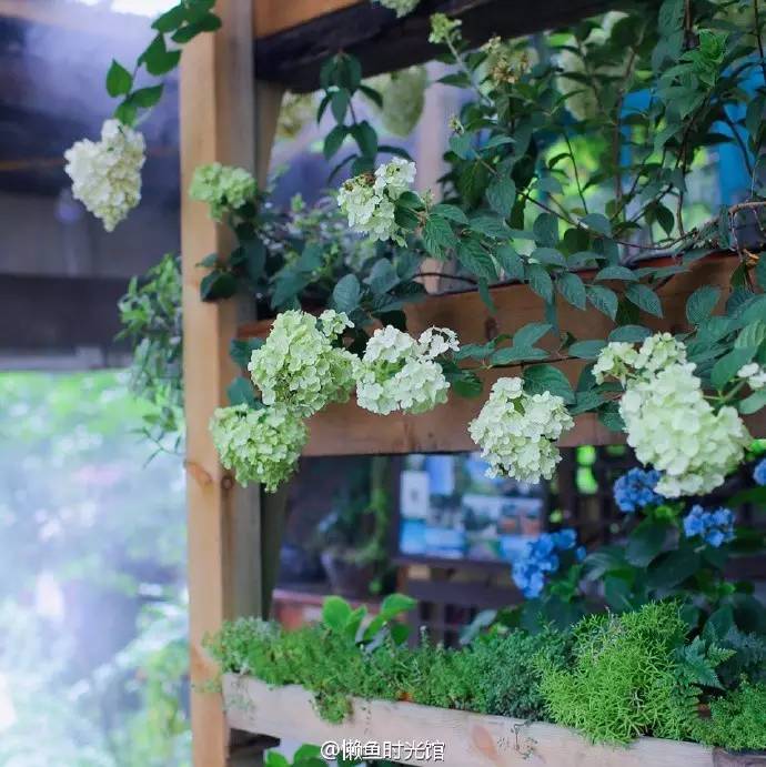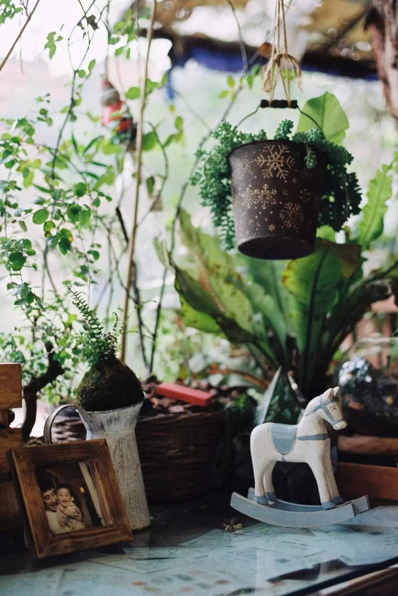 杂货店里,种满了鲜花和绿植,在每一个角落生机略动。白色的墙上写着“有一天我们林子里见”,我觉得我走进了懒鱼构造的城市森林,在这里发现了林荫的小秘密。伴随着斑驳的阳光,浸满淡淡花香的杂货店,似乎鲜活了起来,每一处精细的布置都抓住了我。