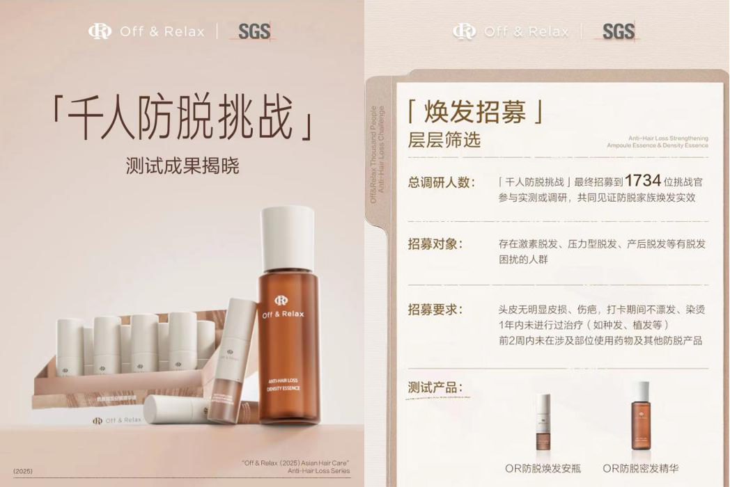 在这点上,Off&Relax构建的“立体实证体系”颇具代表性:通过皮肤科医生、研发科学家进行原理科普,将漫长的“起效期”转化为消费者可理解的“效果时间轴”;与此同时,品牌联合权威检测机构开展万人打卡项目,通过真实用户的变化打造证言系统。