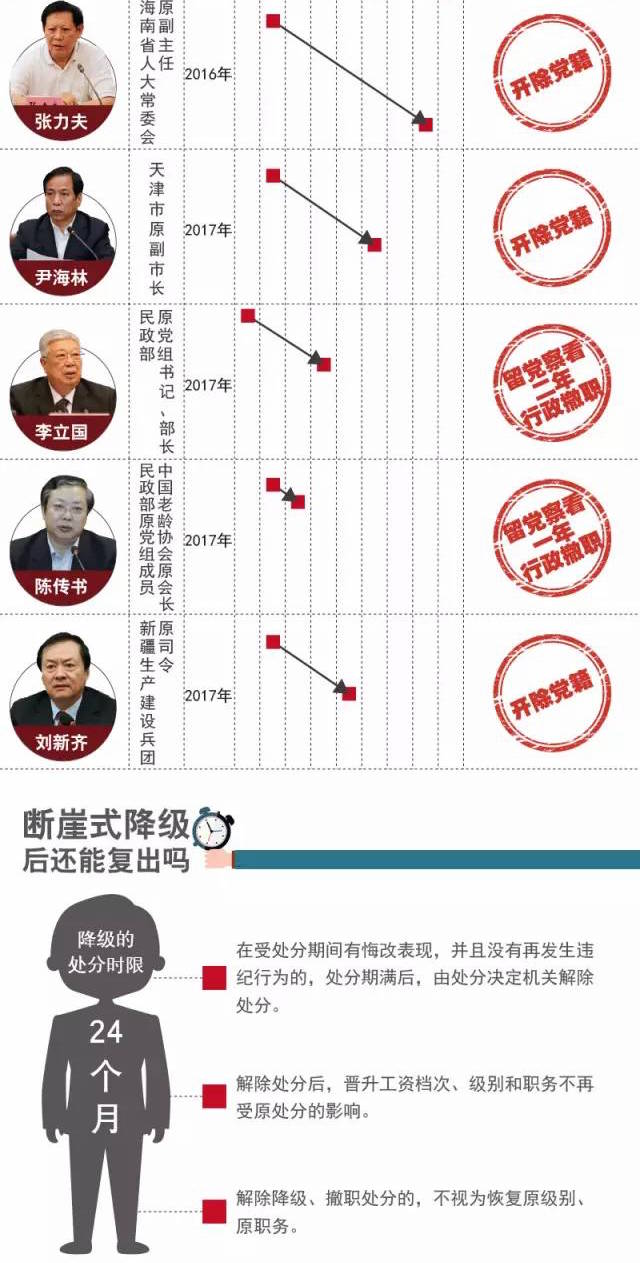 十八大以来,已有22名省部级官员因严重违纪遭遇“断崖式降级”。谁降得最狠?9人被降为处级,1人被降为科级,3人被降为科员。什么是“断崖式降级”?降级后待遇如何?还能复出吗?